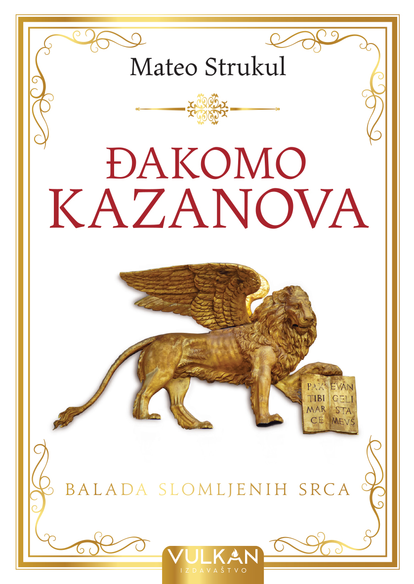 Razvratnik, zavodnik, književnik, buntovnik, alhemičar, mačevalac, avanturista, putnik. Jedan od najneverovatnijih antiheroja u istoriji. Veličanstveni Kazanova. U novom romanu čuvenog Matea Strukula navedene su mnoge nepoznate zanimljivosti o Kazanovinom životu koje je autor prikupio tokom temeljnog istraživanja. Knjiga je pisana za sve ljubitelje intrigantnih priča o stvarnim istorijskim ličnostima.