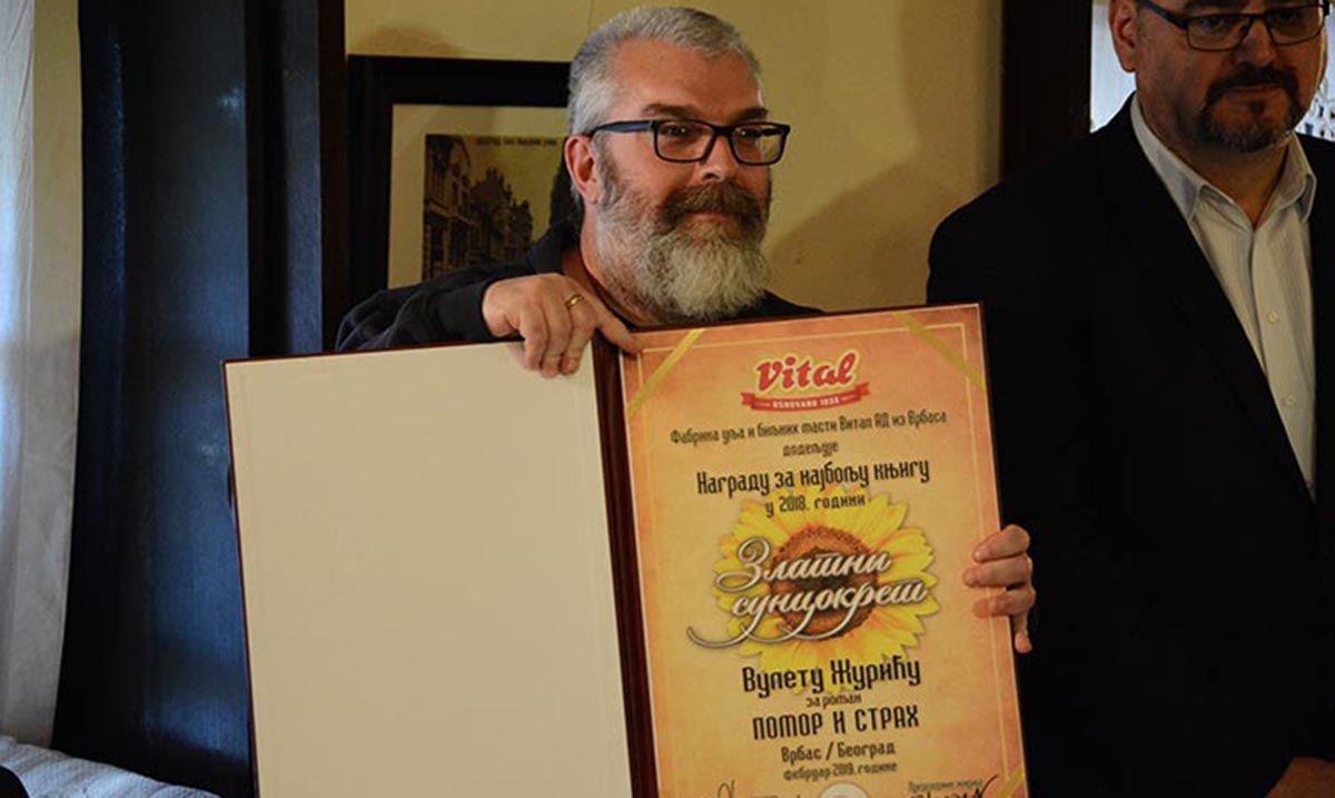 Vule Žurić je dvadeset drugi laureat prestižne Vitalove književne nagrade „Zlatni suncokret“. Priznanje je dobio za roman „Pomor i strah“. Svečanost uručenja nagrade održana je 21. februara, a pored nagrađenog pisca, učestvovali su i članovi žirija Vladimir Gvozden (predsednik), Dragan Jovanović Danilov i Dragan Babić, kao i direktor Vitala Rajko Čavorović, koji je Žuriću i uručio nagradu.