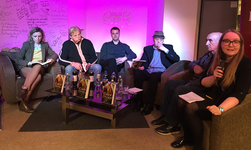 Promocija knjige „Sabor junaka“ Petra Žebeljana održana je u Delfi Caféu u SKC-u. Osim autora, o knjizi su govorili književna kritičarka Tamara Krstić, književnik Ljubivoje Ršumović i istoričar književnosti dr Branko Zlatković. Odlomke je čitao glumac Vico Dardić, a muziku za gitaru izveo je professor Fakulteta muzičke umetnosti dr Uroš Dojčinović.
