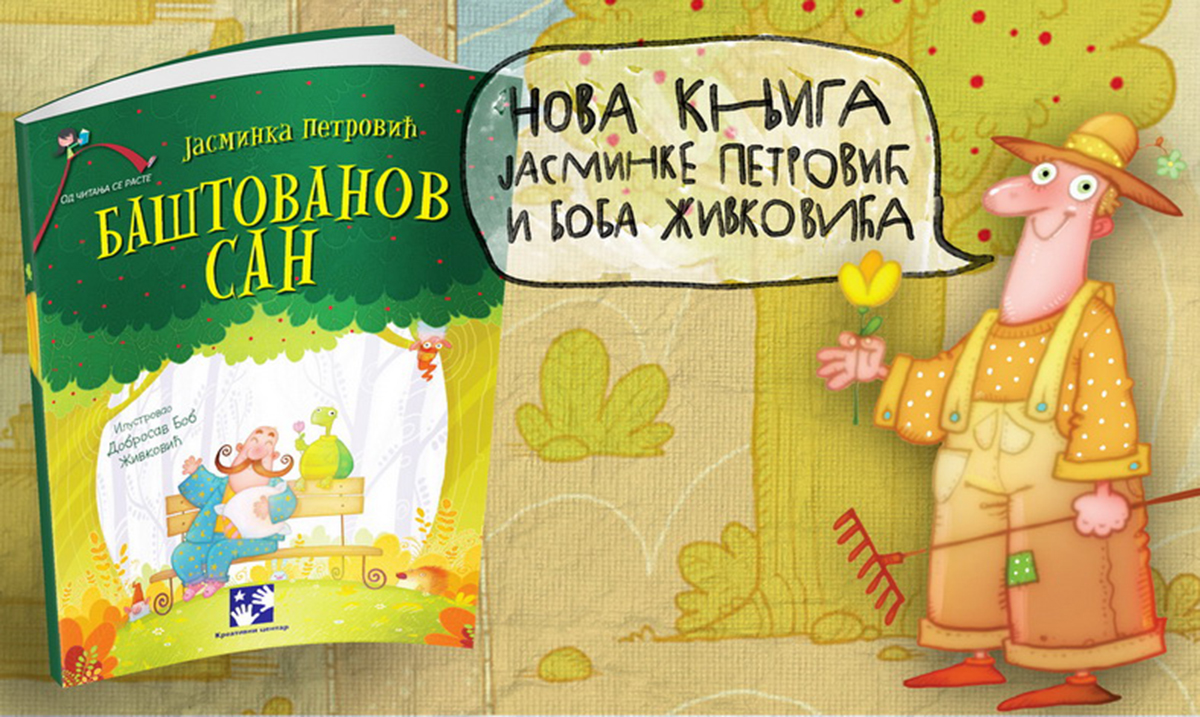 Nova knjiga Kreativnog centra pod nazivom Baštovanov san poznatog autorskog tandema koji čine Jasminkа Petrović i Dobrosav Bob Živković objavljena je u ediciji Od čitanja se raste i namenjena je početnicima u čitanju i prilagođena je potrebama ove ciljne grupe. Veći font i prored olakšavaju malim čitaocima savladavanje ove veštine, dok ih maestralne ilustracije Dobrosava Boba Živkovića uvode u čudesan svet jednog baštovana.