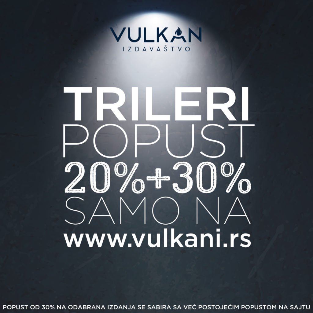 Tokom cele nedelje samo na našem sajtu www.vulkani.rs moći ćete da odaberete neke od najkvalitetnijih izdanja iz oblasti trilera. Iskoristite neverovatnu ponudu i upotpunite svoju biblioteku naslovima svetski poznatih autora, jedinstvenim skandinavskim trilerima i krimi romanima koje ćete dugo pamtiti!