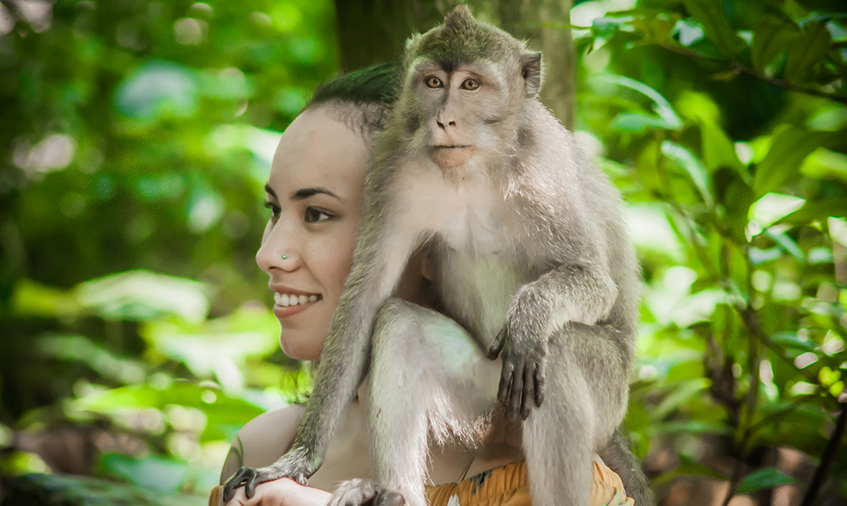 Na svom foto putovanju po Aziji, inspirisan ljubavlju prema životinjama i pod utiskom ogromne sličnosti između majmuna i ljudi, Aleksandar Jovković se upustio u avanturu fotografisanja portreta ovih fascinantnih stvorenja u prelepoj Svetoj šumi majmuna.