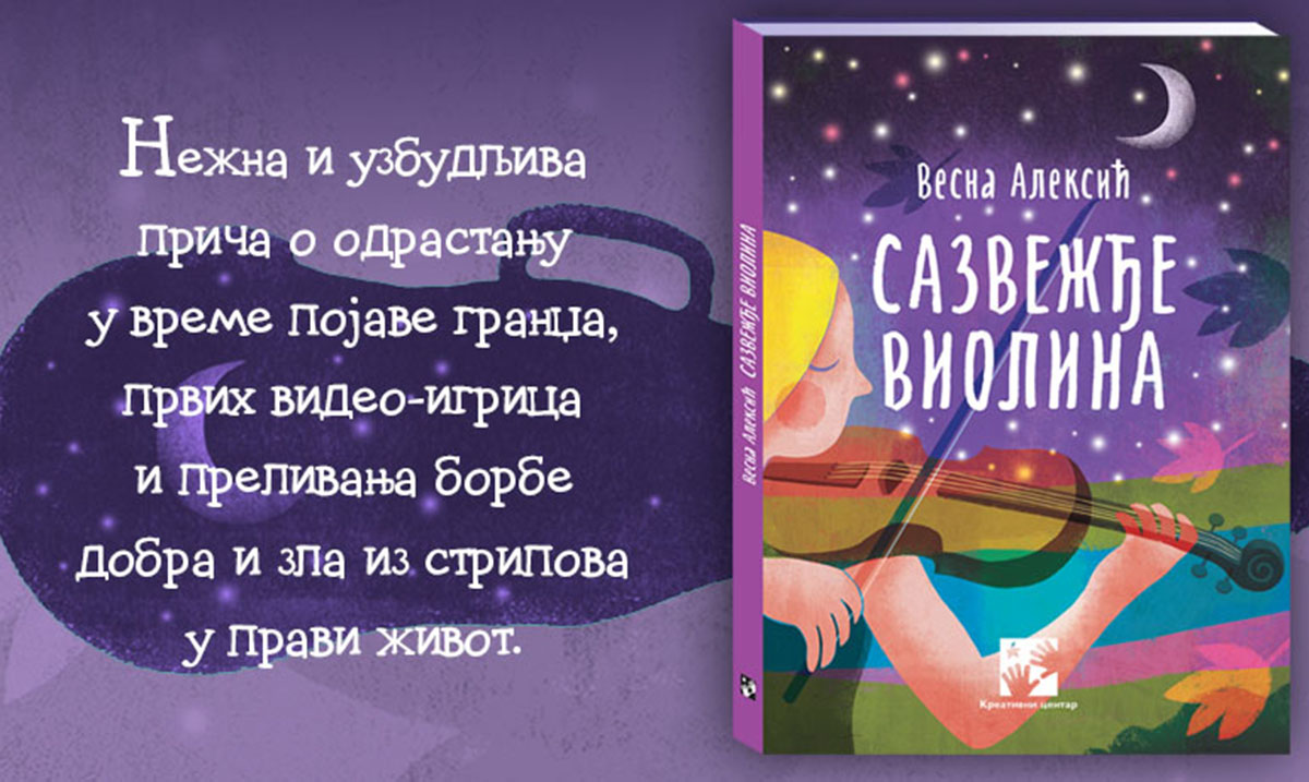 Roman Vesne AleksićSazvežđe violina“, u izdanju Kreativnog centra, govori o odrastanju generacije X – dece rođene osamdesetih godina prošlog veka. Danas su to zreli ljudi koji se sećaju prvih glomaznih kompjutera, video-igrica sa džojstikom i besomučnog krčanja prilikom priključivanja na internet. Odrastali su u ratovima i demonstracijama, uz dobru muziku, filmove i stripove. Bili su svedoci prekrajanja atlasa i još kao deca vojni i politički komentatori, kao i muzički i modni. Bili su zaljubljenici u svoje snove i istovremeno njihovi zarobljenici, kao što se to događa u svačijoj mladosti.