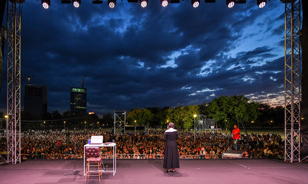 „Nikad nijedan vizuelni umetnik nije nastupao pred ovolikom publikom, bar ne da ja znam. Zato je za mene ovo veče veoma posebno. Interakcija sa publikom čini performans umetnošću i bez vas, ja ne bih postojala.“