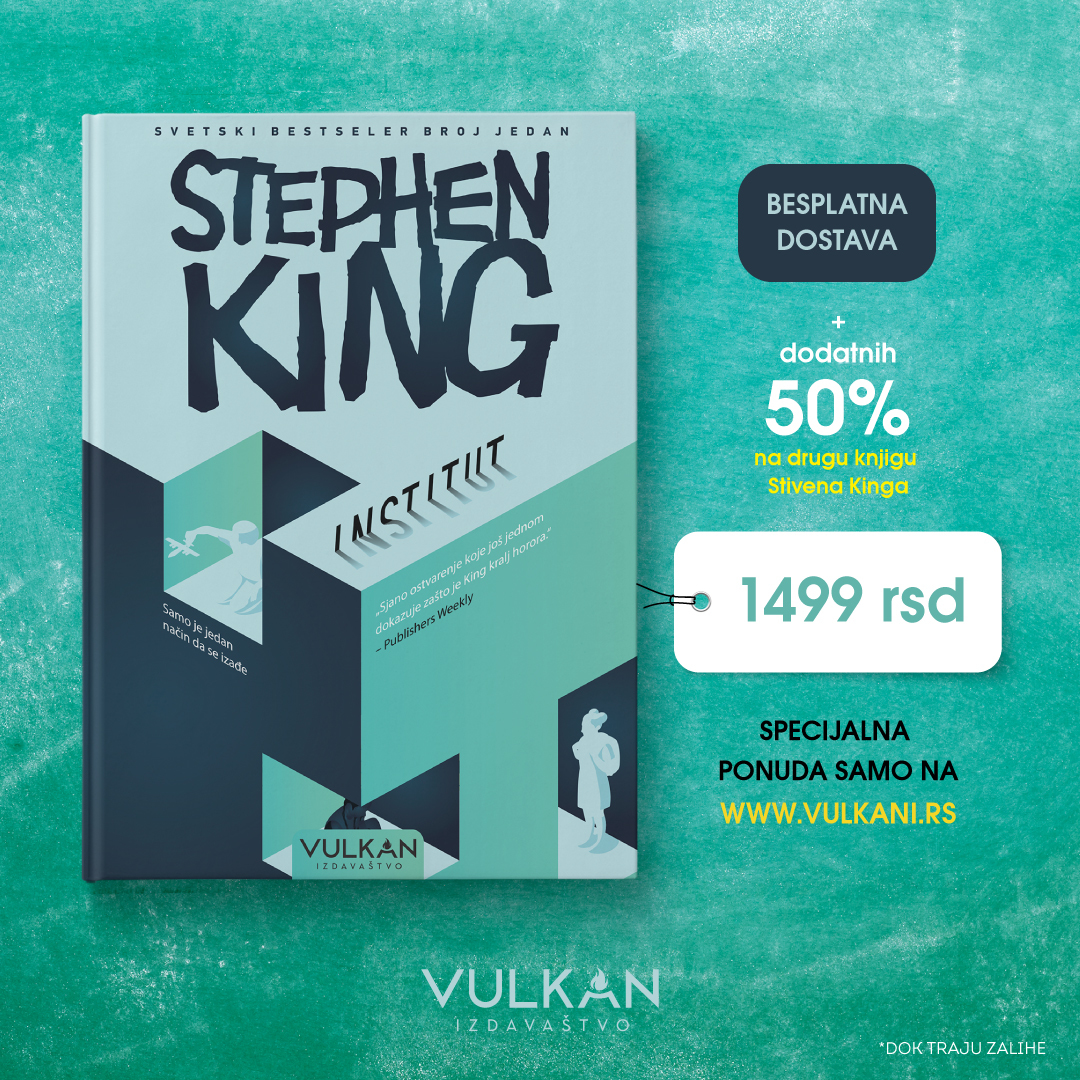 Za sve fanove nenadmašnog Stivena Kinga pripremili smo specijalnu ponudu samo na sajtu www.vulkani.rs. Kupovinom nove knjige Institut, čitaoci imaju mogućnost da kupe još jednu Kingovu knjigu po izboru sniženu upola cene!