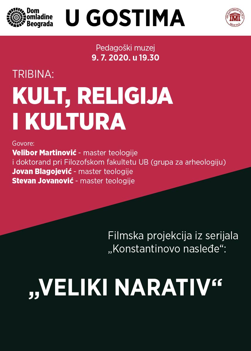 Dom omladine Beograda u četvrtak, 09. jul 2020. u 19:30 u saradnji sa Pedagoškim muzejem prezentuje tribinski program „DOB u gostima“ pod nazivom „Kult, religija i kultura“. Ulaz je slobodan.