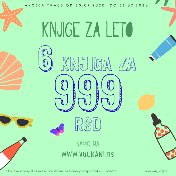 * Ukoliko naručite samo jednu knjigu sa spiska, platićete je po redovnoj ceni. Tokom trajanja akcije, od 25. do 31. jula, potrebno je da odaberete šest naslova sa spiska kako biste ostvarili pravo na kupovinu po ceni od 999 dinara. Tokom trajanja akcije KNJIGE ZA LETO ne važe dodatni popusti. Dakle, krajnja cena je 999 dinara za šest knjiga sa liste. Za narudžbine vrednosti preko 2.000 dinara kupci su oslobođeni plaćanja poštarine.