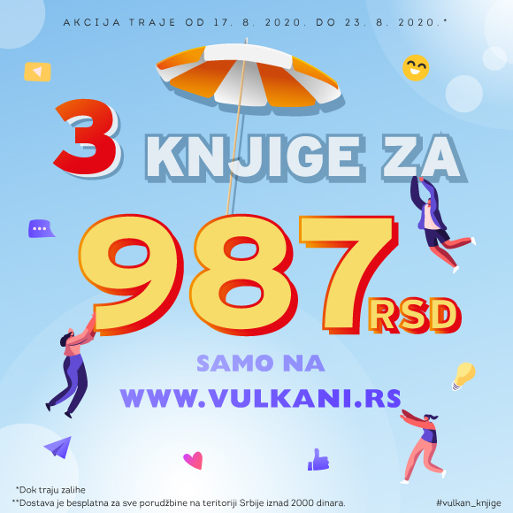 Samo na sajtu www.vulkani.rs od 17. do 23. avgusta očekuje vas vrela letnja ponuda: tri knjige po ceni od 987 dinara! Spisak knjiga na akciji, kao i sve neophodne informacije, možete videti putem linkhttps://www.vulkani.rs/akcija.aspx.