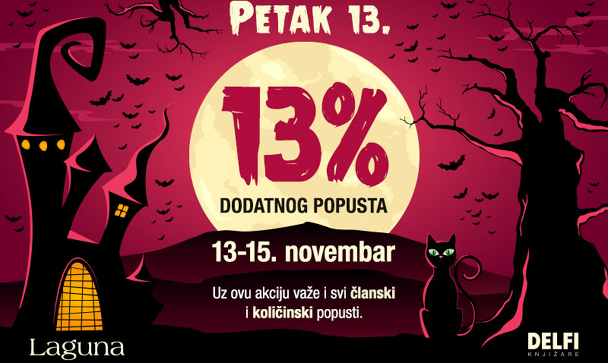 Petak 13. obično izaziva negativne reakcije, ali ne i u Laguni i Delfi knjižarama gde donosi veće popuste!