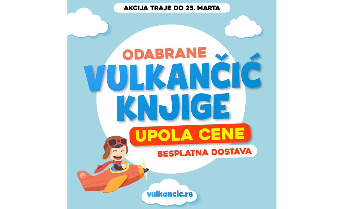 Za svoje najmlađe i najvernije čitaoce Vulkančić je spremio savršeno iznenađenje! U periodu od 17. do 25. marta samo na sajtu www.vulkancic.rs odabrane knjige za decu biće snižene upola cene! A da kupovina knjiga za one koje najviše volite bude brza, jednostavna i pre svega bezbedna, dostava na teritoriji Republike Srbije za svaku porudžbinu za vreme trajanja akcije je besplatna!