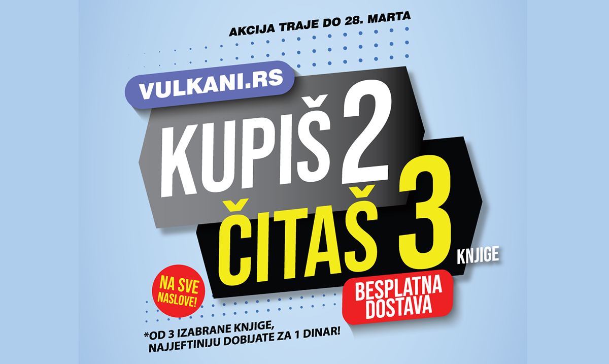 ** Akcija važi samo na sajtu www.vulkani.rs. Da biste kupili knjige po akcijskoj ceni, neophodno je da odaberete tri knjige sa sajta.