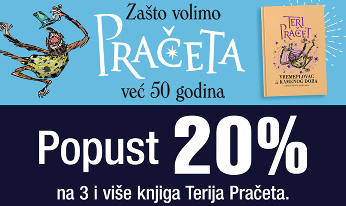 Zbog toga što volimo Terija Pračeta i zbog toga što nijedna kuća ne bi trebalo da bude bez njegovih čarobnih priča i avantura, do nedelje 30. maja u svim Delfi knjižarama, kao i na sajtovima laguna.rs i delfi.rs, možete ostvariti popust od 20% na kupovinu tri ili više knjiga Terija Pračeta.