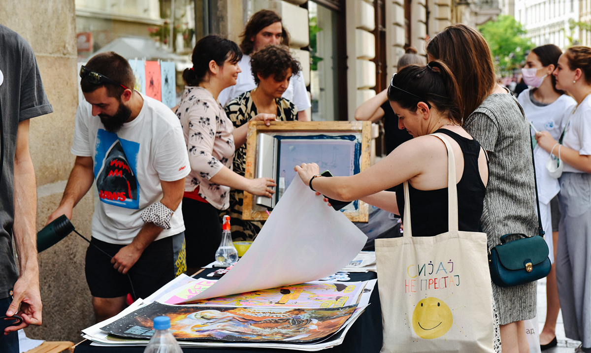 Centralni deo proslave rođendana obeležili su nastupi umetnika:. DJ Gringo predstavio je savremenu francusku muziku, umetnice TKV i Kaldea su uživo stvarale svoju uličnu umetnost, grafički kolektiv Matrijaršija je štampao majice sa specijalnim dizajnom povodom 70 godina instituta, dok su članovi grupe Balkan Fury i Stanice – Servisa za savremeni ples izvodili savremeni i hip hop ples.