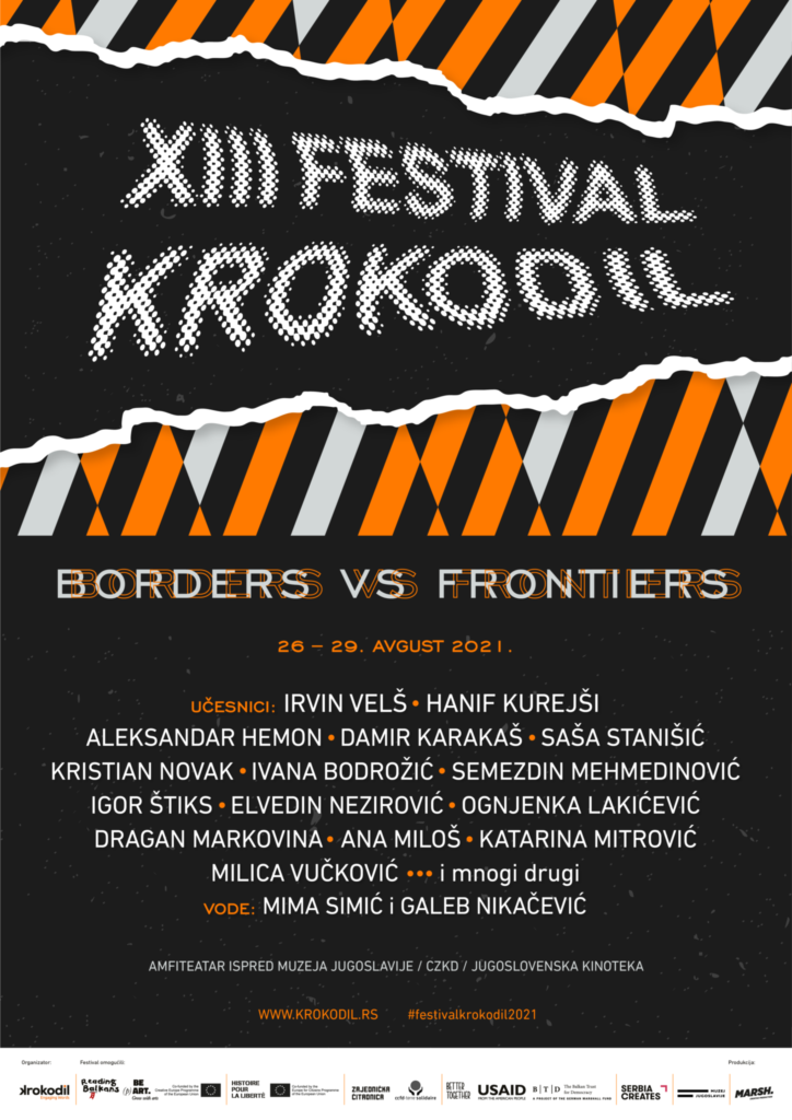 Književni festival „Krokodil“ biće održan pod nazivom „Borders vs. Frontiers“ od 26. do 29. avgusta u Beogradu, a među učesnicima biće britanski pisci Irvin Velš i Hanif Kurejši, najavili su danas organizatori.