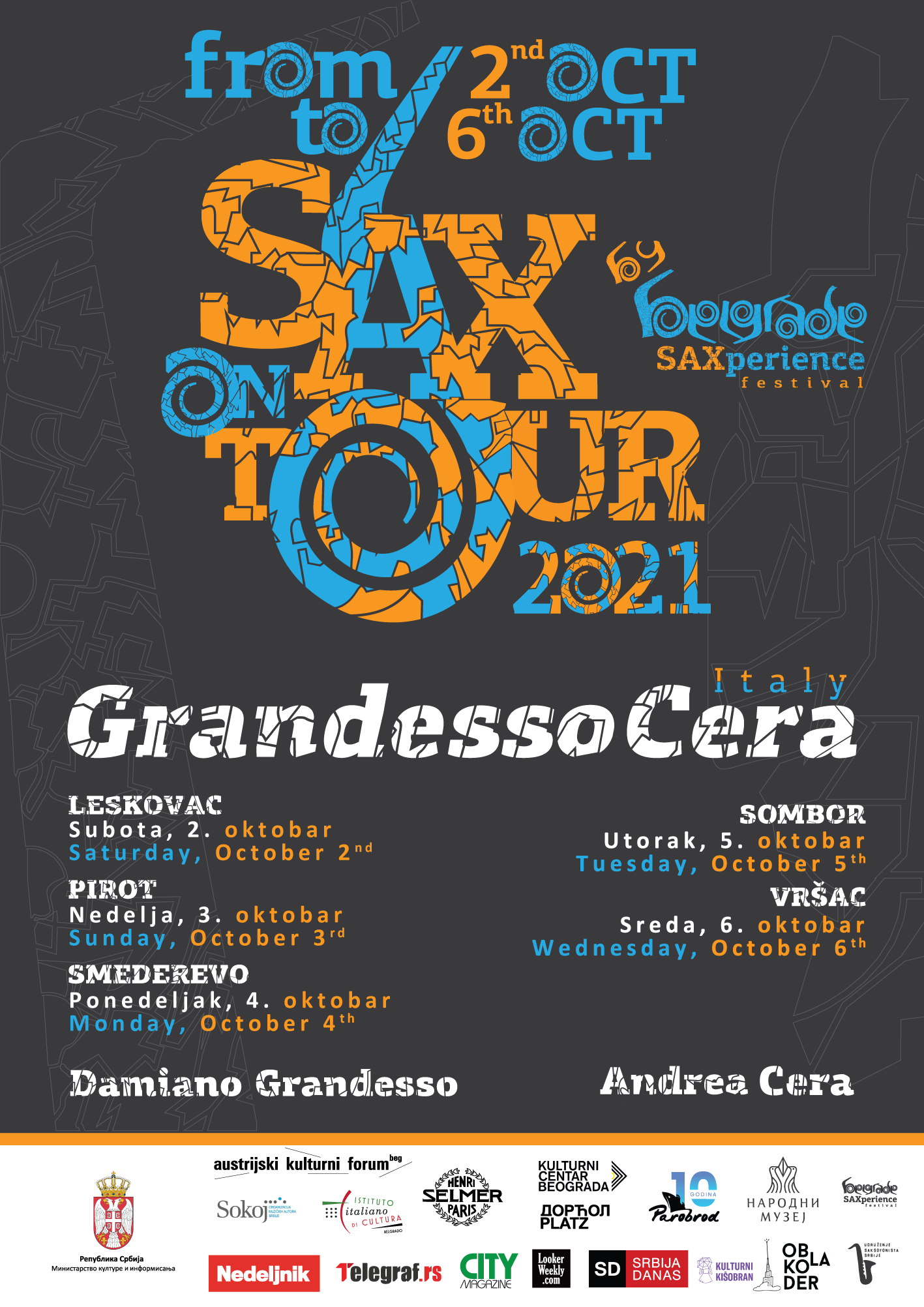Koncertna turneja biće održana od 2. do 6. oktobra u Leskovcu, Pirotu, Smederevu, Somboru i Vršcu. Na turneji će nastupiti italijanski saksofonista Damjano Grandeso koji će izvesti program pod nazivom “Electic Propaganda”, kreiran u saradnji sa kompozitorom Andreom Čerom.