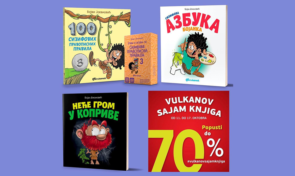 Drugu godinu zaredom, Vulkanov sajam knjiga svojim prisustvom upotpuniće Bojan Jokanović, koji je srca čitalačke publike osvojio interaktivnim i edukativnim knjigama posvećenim borbi za pravopis srpskog jezika, a čiji je glavni lik mitski junak Sizif. Autor će ovom prilikom predstaviti dva nova naslova – 100 Sizifovih pravopisnih pravila 3 i Neće grom u koprive, kao i edukativne karte, Učim i igram se: Sizifova pravopisna pravila 3.