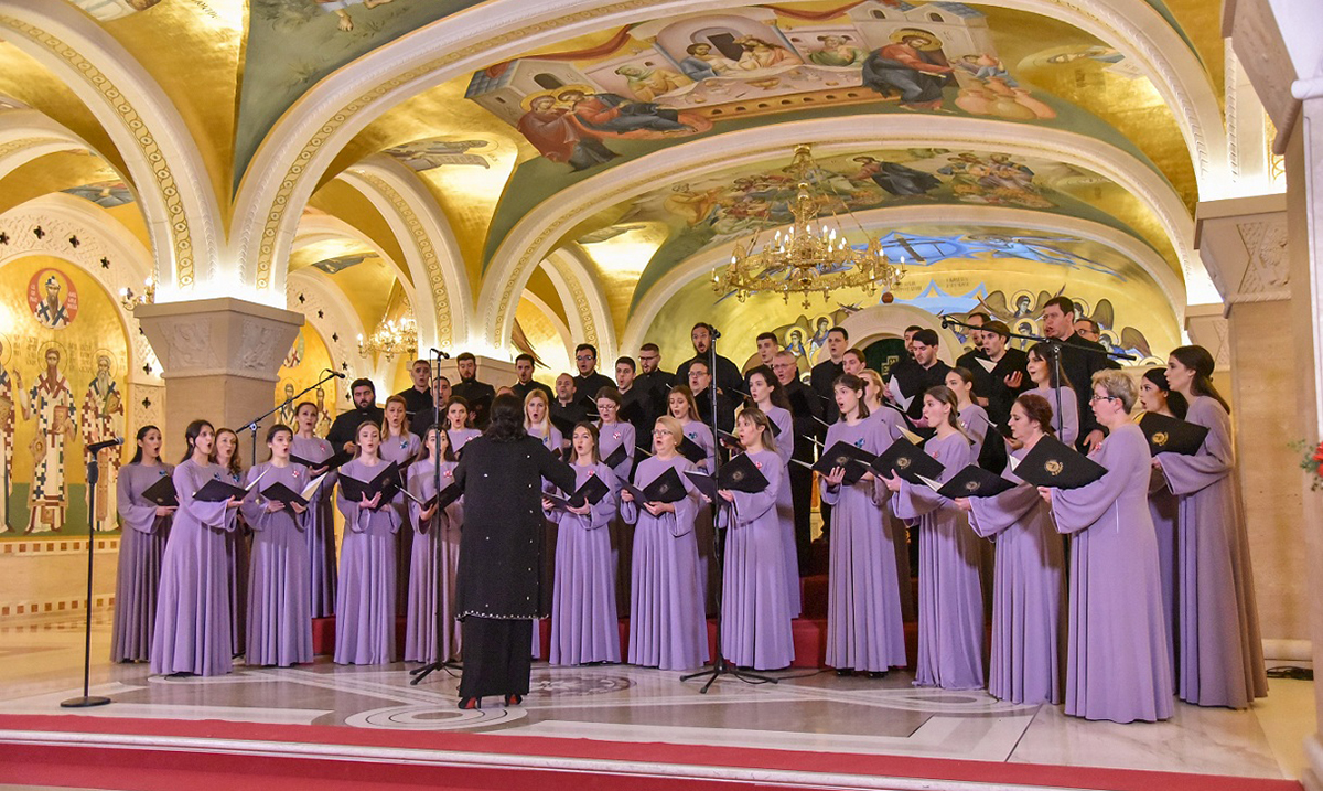 Na programu su bila dela duhovne muzike: intoniranje Polijelejnog psalma Protojereja Dimitrija Arzumanova, u izvođenju ženskog ansambla, zatim su usledila dela srpskih i ruskih kompozitora, od Stevana Mokranjca, Kornelija Stankovića, Sergeja Rahmanjinova i Čajkovskog, do nekoliko kompozicija novijeg datuma, mladih srpskih kompozitora, među kojima je i Heruvimska pesma, Andreja Cincarevića. U kripti Hrama izvedeno je i „Opelo“, Stevana Stojanovića Mokranjca, u čast i pomen preminulom Patrijarhu Irineju. Koncert je završen „Vaskršnjim Antifonom” uz gromoglasan aplauz publike, a hor „Branko“ na radost mnogobrojnih posetilaca izveo je na bis još dve numere, među kojima je posebnu pažnju izazvala Francusku Roždestvena pesma, „Slava vo višnjih Bogu“.