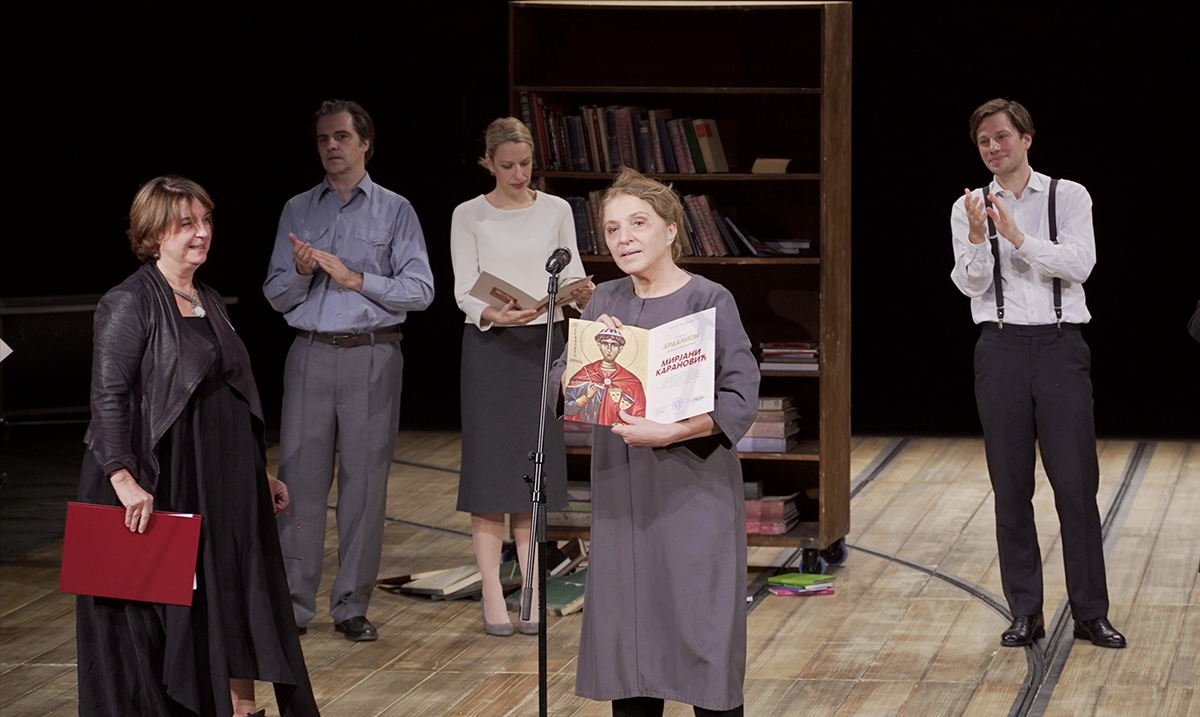 Tim povodom predstavnici Narodnog pozorišta iz Užica dodeli su sinoć Ardalione nagrađenima na festivalu, posle odigrane predstave „Čitač“ u Beogradskom dramskom pozorištu.