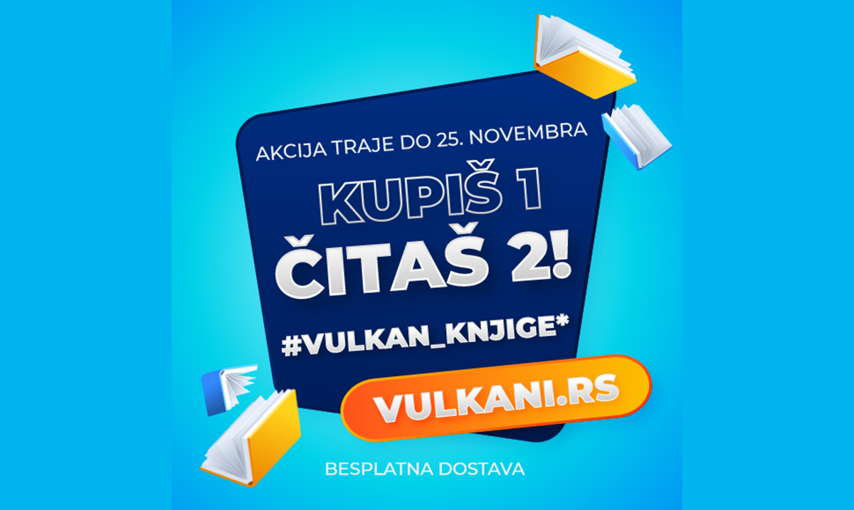 U periodu od 22. do 25. novembra, Vulkan izdavaštvo sve svoje čitaoce nagrađuje fenomenalnom akcijom! Kupovinom dve knjige iz akcijske ponude, jeftiniju dobijate za 1 dinar. Ali to nije sve! Dostava na teritoriji Republike Srbije tokom trajanja akcije je besplatna. Zgrabite priliku i uživajte u najlepšim naslovima svetske književnosti!