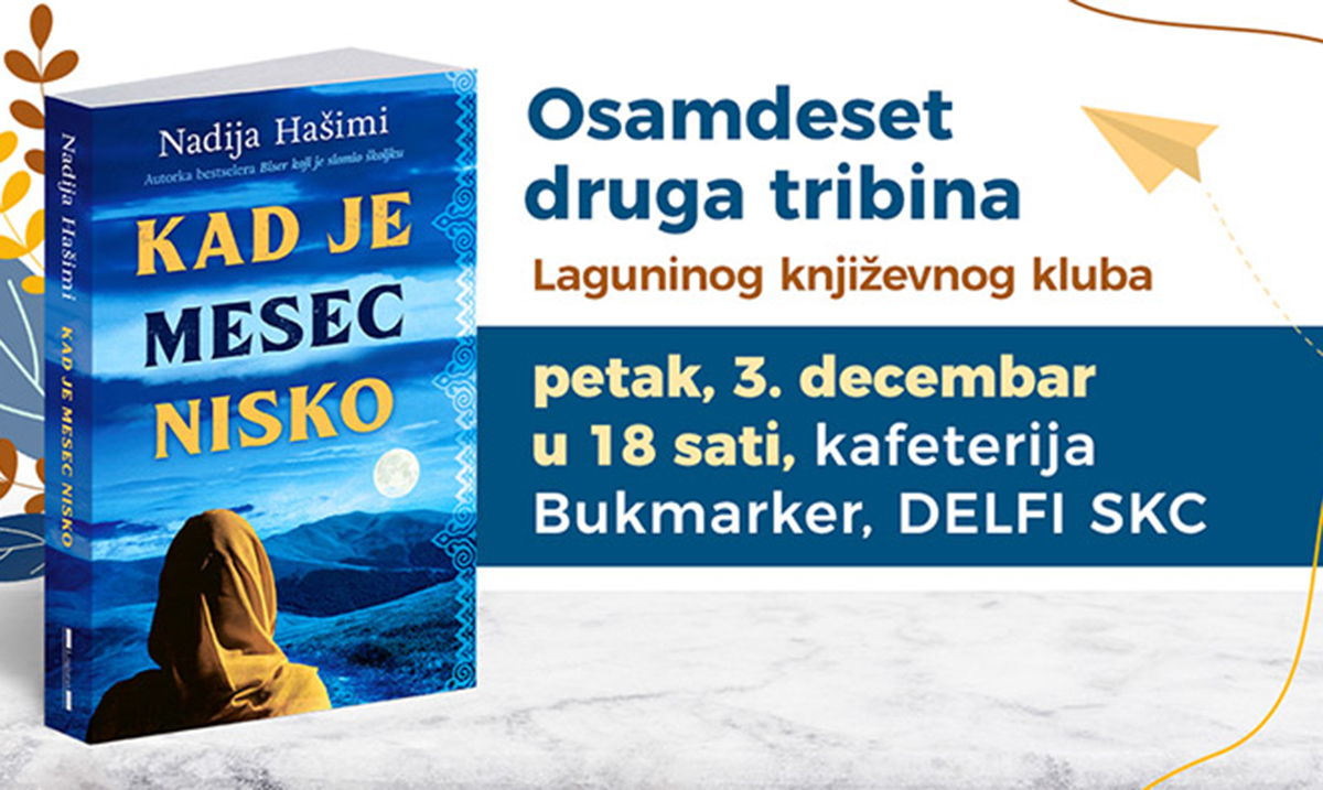 Roman Nadije Hašimi „Kad je mesec nisko“ biće tema osamdeset druge tribine Laguninog književnog kluba, koja se u kafeteriji Bukmarker knjižare Delfi SKC održava prvog petka u decembru, 3. decembra od 18 sati.
