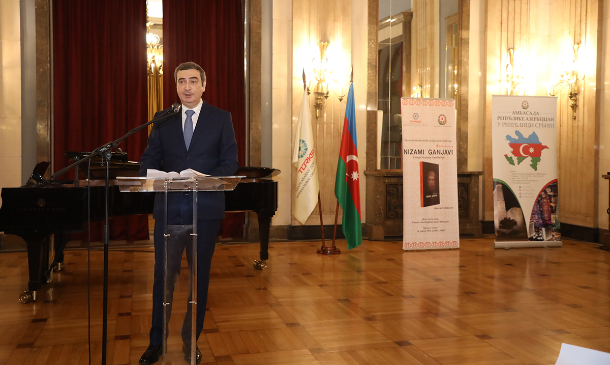 Promocija knjige „Čitanje Nizamija Gandžavija“ održana je večeras u Svečanoj sali Skupštine grada Beograda u organizaciji Međunarodne organizacije turkijskih kultura „Turksoj“ i Ambasade Azerbejdžana u Beogradu, a povodom obeležavanja 880 godina od rođenja ovog azerbejdžanskog pesnika.