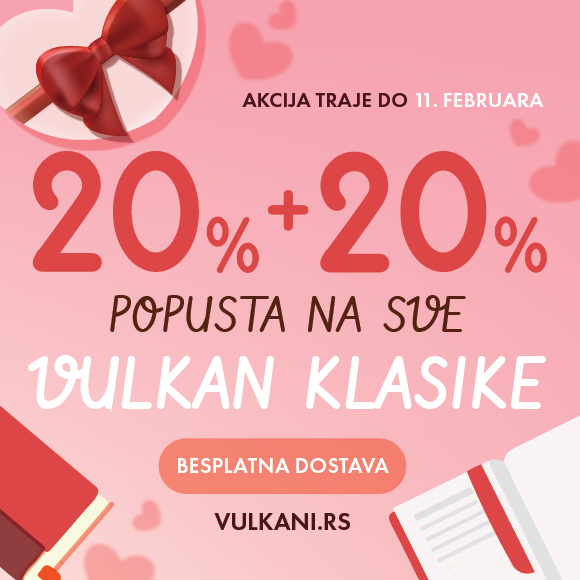Vreme je za najlepše priče kojima se uvek vraćamo! U mesecu ljubavi, Vulkan izdavaštvo je za svoje verne čitaoce pripremilo jedinstvenu online akciju kojom su obuhvaćena sva dela klasične književnosti. Kupovinom putem sajta vulkani.rs u periodu od 4. do 11. februara ostvarićete dodatnih 20% popusta na već postojećih 20% na sve Vulkan klasike. Knjige poručene tokom trajanja akcije stići će vam na kućnu adresu besplatno!