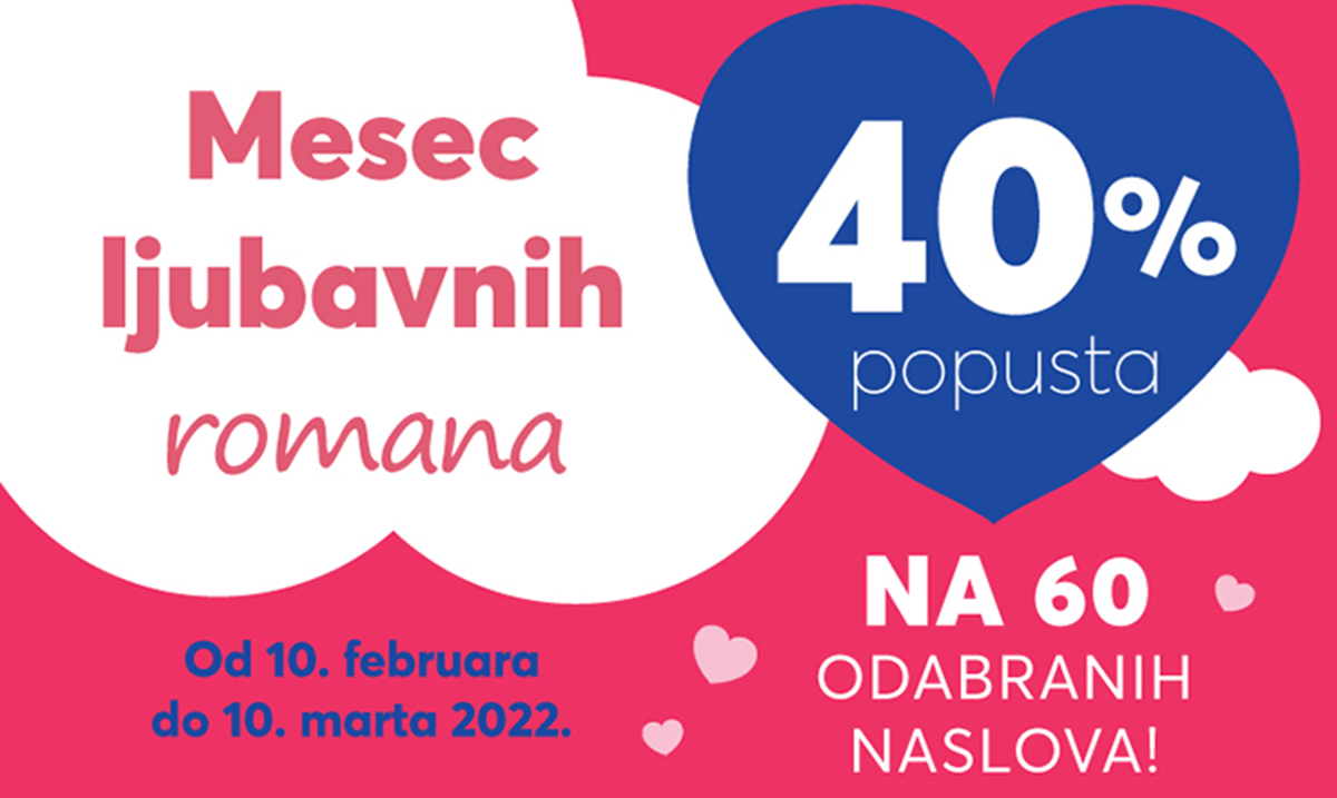 Od 10. februara do 10. marta možete da birate između čak 60 naslova, i to ne samo sa ljubavnom tematikom, koji će biti na sniženju od 40% i tako obradujete sebe ili dragu osobu.