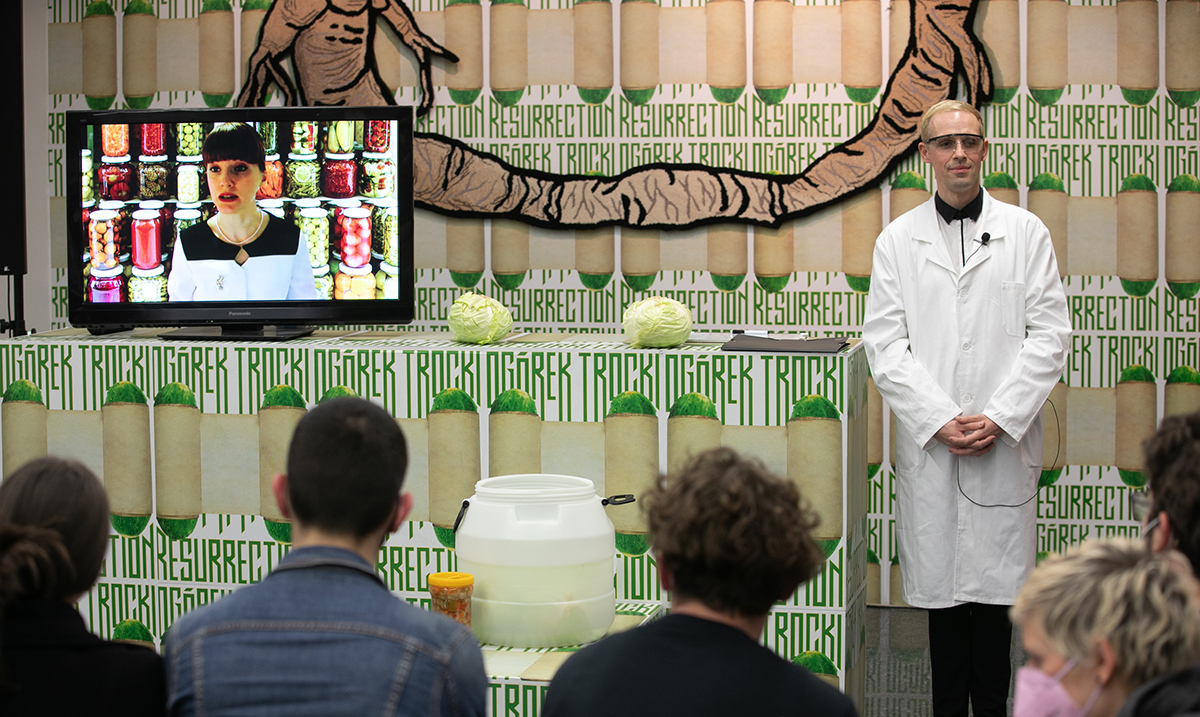 Performans There is no such thing as a free lunch Vokalno-kustoskog sindroma (VKS), čija je kokustoskinja Teodora Jeremić, realizovan je u sklopu projekta ifa-e EVROVIZION.CROSSING STORIES AND SPACES i instalacije Pickle Bar umetničkog kolektiva Slavs and Tatars. Post-kustoska formacija VKS koju čine Senka Latinović i Vladimir Bjeličić, u performativnom kulinarskom tutorijalu i oslanjajući se na proces fermentacije, cilja na repetativnost, banalnost i humorističnu bizarnost birokratskih izazova i svakodnevice na prostorima u trajnoj tranziciji.