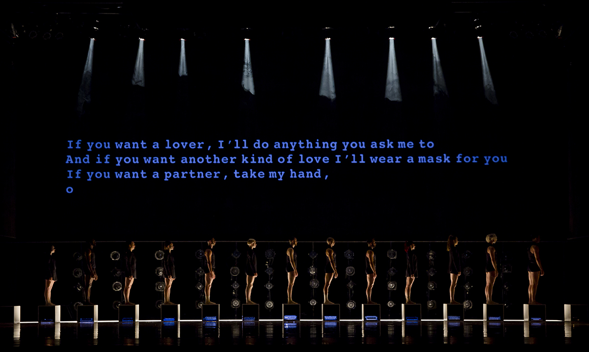Za celovečernji komad, koji je Erik Žan dramaturški uokvirio u narativ o životnim ciklusima u pet godišnjih doba, pozvani su renomirani koreografi Adonis Fonjadakis, Anabel Lopez Očoa i Ihsan Rustem i dat im je ne baš lak zadatak: da osmisle pokrete za legendarne Koenove pesme. Koreografi su vešto izbegli zamke puke inscenacije dobro poznatih stihova, uzimajući ih kao polazište a ne kao cilj, i na njima su gradili nove kreacije, nudeći dodatne mogućnosti njihovog čitanja.