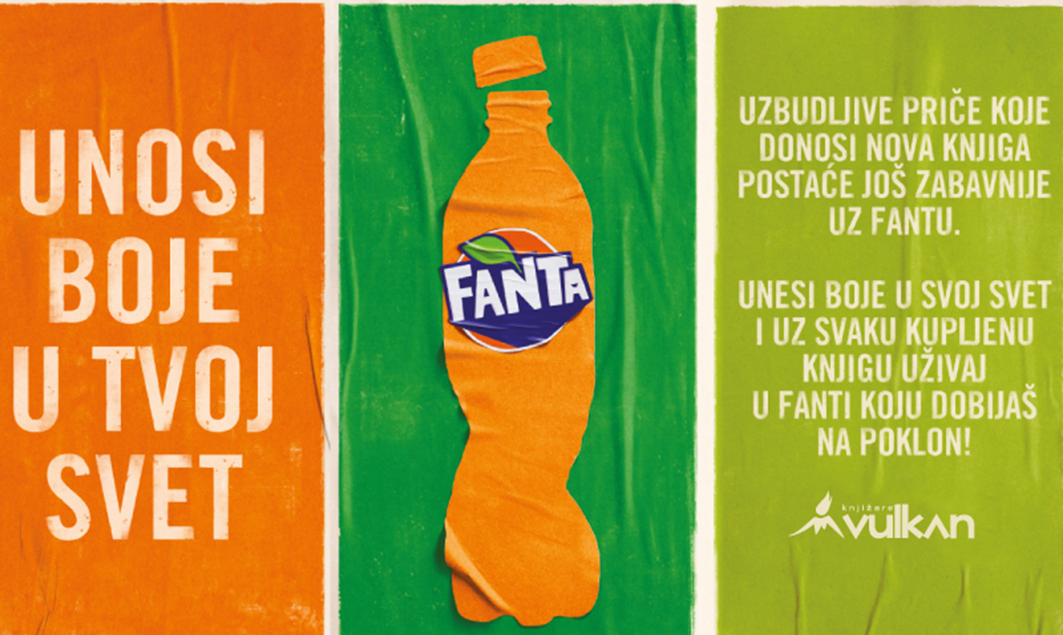 Od 1. aprila uz svaku kupljenu knjigu Vulkan izdavaštva u omiljenoj knjižari Vulkan čeka vas osveženje neodoljivog voćnog ukusa. Kupovinom bilo koje knjige u izdanju Vulkana, Vulkančića i YA Vulkana na poklon dobijate flašicu bezalkoholnog pića Fanta Tropical.