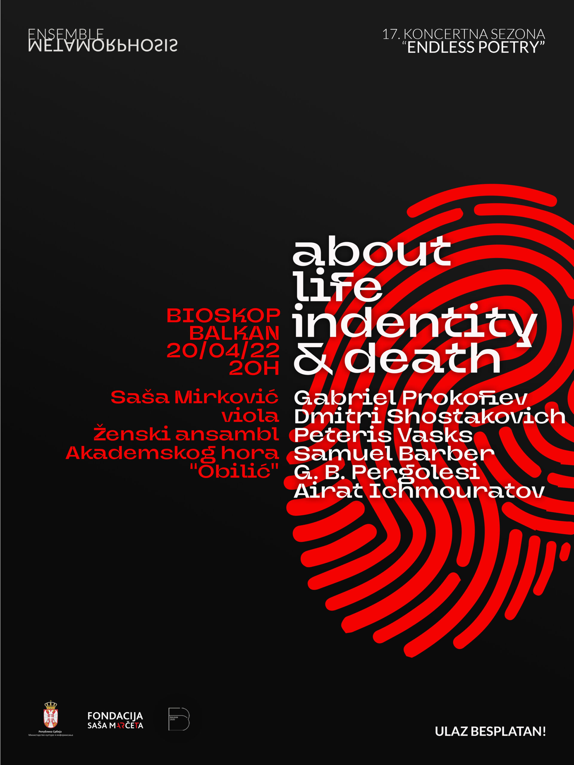 Koncertom “About Life, Identity & Death” 20. aprila u Bioskopu Balkan, ansambl Metamorfozis zvanično otvara svoju 17. koncertnu sezonu „Endless poetry“ i time uspešno nastavlja predstavljanje interesantnih programa domaćoj i stranoj javnosti. Nastup počinje u 20h, a ulaz je slobodan.