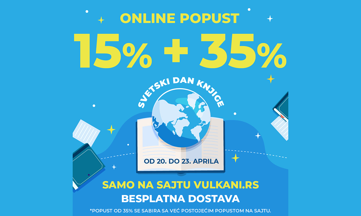 Povodom Svetskog dana knjige, Vulkan izdavaštvo pripremilo je sjajnu onlajn-akciju za svoje verne čitaoce. Još danas za poručivanje putem sajta vulkani.rs omogućavamo dodatnih 35% popusta na već postojeći popust od 15% na cene svih izdanja Vulkana, Vulkančića i YA Vulkana. Dostava knjiga poručenih tokom trajanja akcije je besplatna na teritoriji Republike Srbije.
