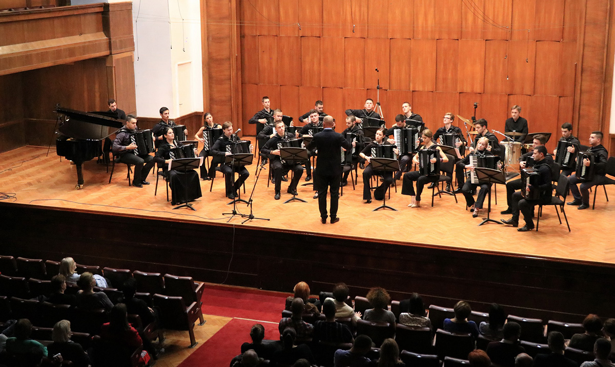 Akordeonista orkestar – Kragujevački akademski orkestar akordeonista osnovan je 2018. godine sa ciljem promocije harmonike kao akademskog instrumenta. Imajući u vidu da je prostor na kome živimo vekovima bio na raskrsnici Istoka i Zapada, velika je sreća da su se uticaji obeju strana reflektovali u najpozitivnijem smislu na umetnost sviranja ovog instrumenta, te grad Kragujevac na svetskom nivou biva prepoznat po svojoj školi harmonike. Orkestrom diriguje Predrag Kostović.