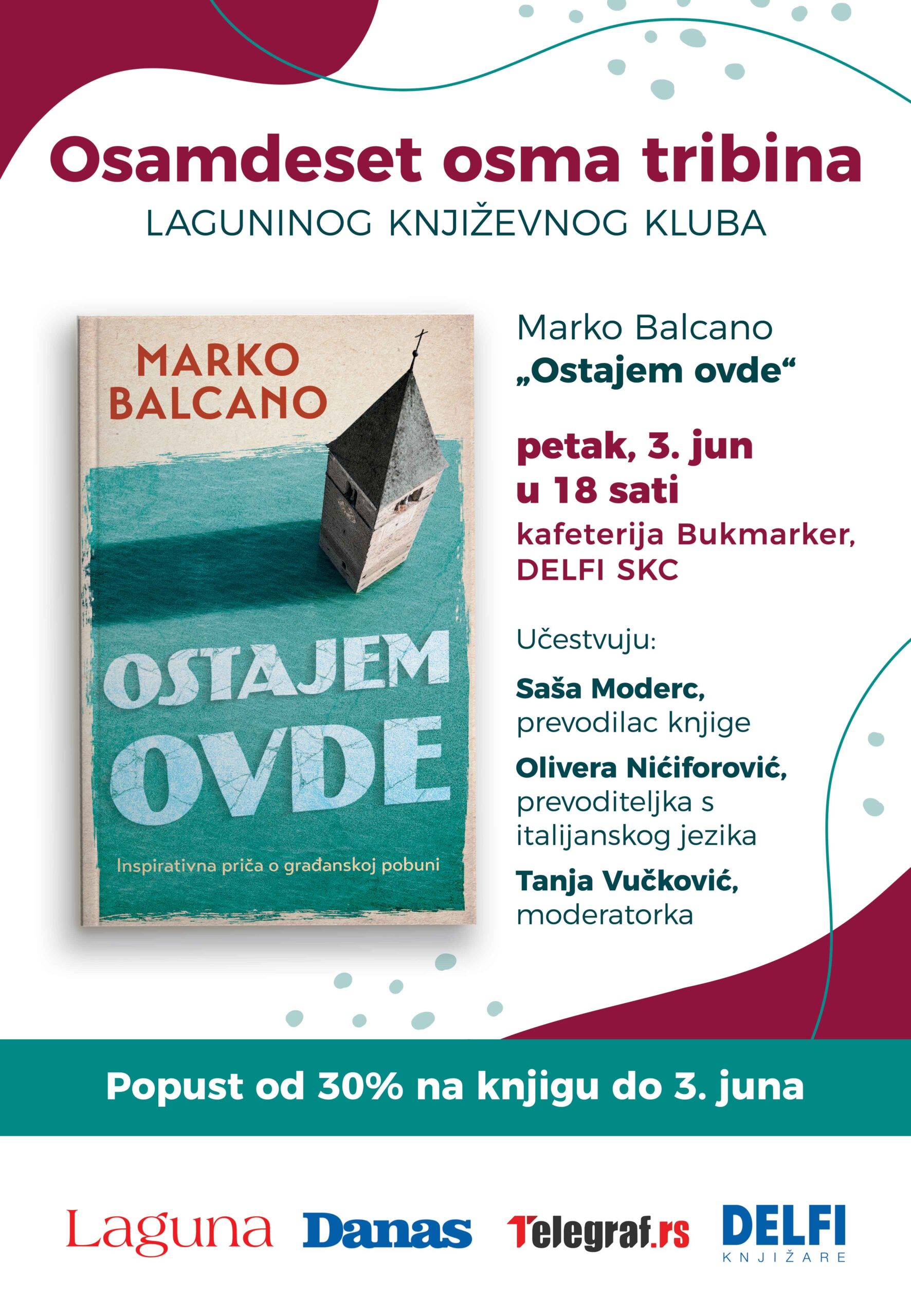 Dirljiv i inspirativan roman „Ostajem ovde“ o ženi koja se odupire fašizmu, nacizmu a kasnije i izgradnji brane koja preti da poplavi selo u kom živi biće tema 88. tribine Laguninog književnog kluba koja će se održati prvog petka u junu, 3. juna od 18 sati u knjižari Delfi SKC.