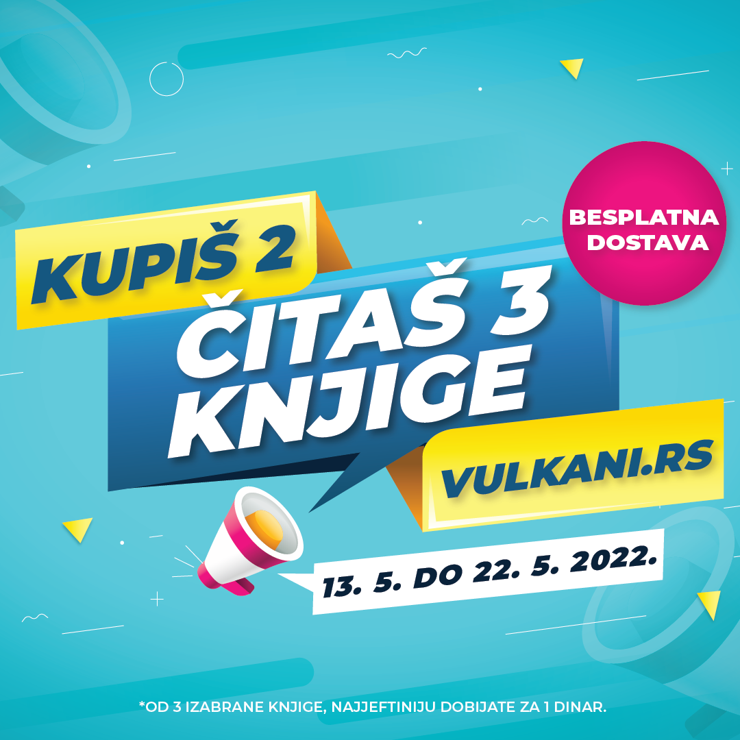 Vulkan izdavaštvo je pripremilo specijalnu onlajn-akciju za svoje čitaoce. Na sajtu vulkani.rs izaberite tri knjige sa spiska odabranih naslova i najjeftiniju ćete platiti samo jedan dinar. Akcija traje od 13. do 22. maja, a za porudžbine iznad 2000 dinara dostava na teritoriji Srbije je besplatna. Među odabranim Vulkanovim naslovima pronaći ćete planetarne hitove, neprikosnovene bestselere, romane koji su osvojili milione čitalaca širom sveta. Kompletan spisak knjiga na akciji možete pogledati putem linka.