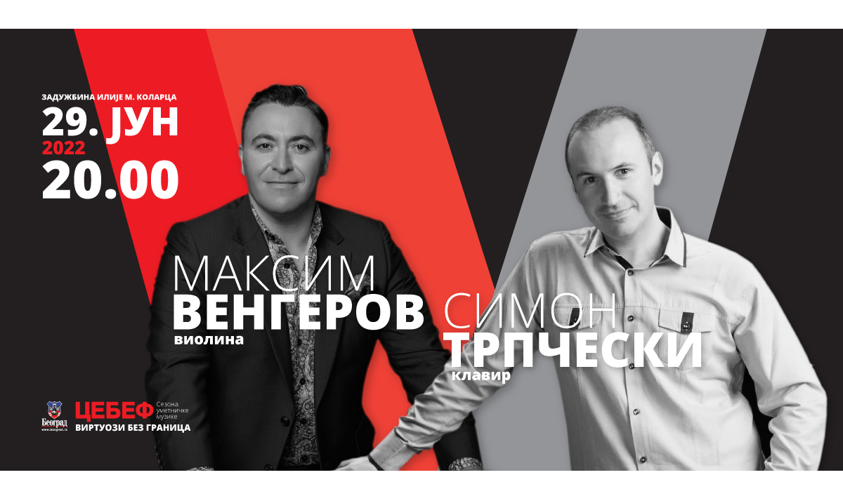 Eksplozivni duo koji čine dobitnik Gremija – violinista Maksim Vengerov i pijanista Simon Trpčeski, čije interpretacije predstavljaju “vatromet virtuoziteta i emocija”, nastupaju 29. juna na Kolarcu, u okviru CEBEF-ove sezone umetničke muzike „Virtuozi bez granica“. Nakon trijumfalnih zajedničkih koncerata u Karnegi holu, Barbikan centru i Sali Pariske filharmonije, velikani klasične muzike garantuju nezaboravan doživljaj i beogradskoj publici.