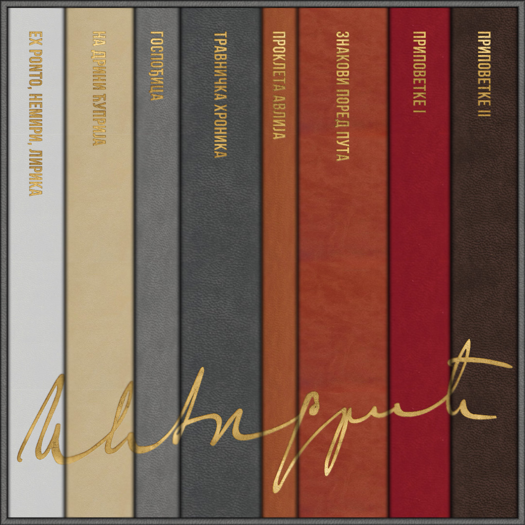 Nobelovom nagradom za književnost ovenčana je „epska snaga pripovedanja kojom je Ivo Andrić oblikovao teme i prikazao sudbine ljudi tokom istorije svoje zemlje“. Andrićevim perom ispisana su dela koja svedoče o jednom vremenu, predstavljaju zalog za budućnost i zauvek ostaju etalon književnosti ovog područja i svrstavaju je u sam vrh svetske umetničke baštine XX veka. Vulkan izdavaštvo vam s ponosom predstavlja komplet izabranih dela našeg nobelovca u ekskluzivnom kožnom povezu. Izabrana dela čine sledeće knjige: Pesme, Ex Ponto, Nemiri, Na Drini ćuprija, Gospođica, Travnička hronika, Prokleta avlija, Znakovi pored puta, Pripovetke I i Pripovetke II.