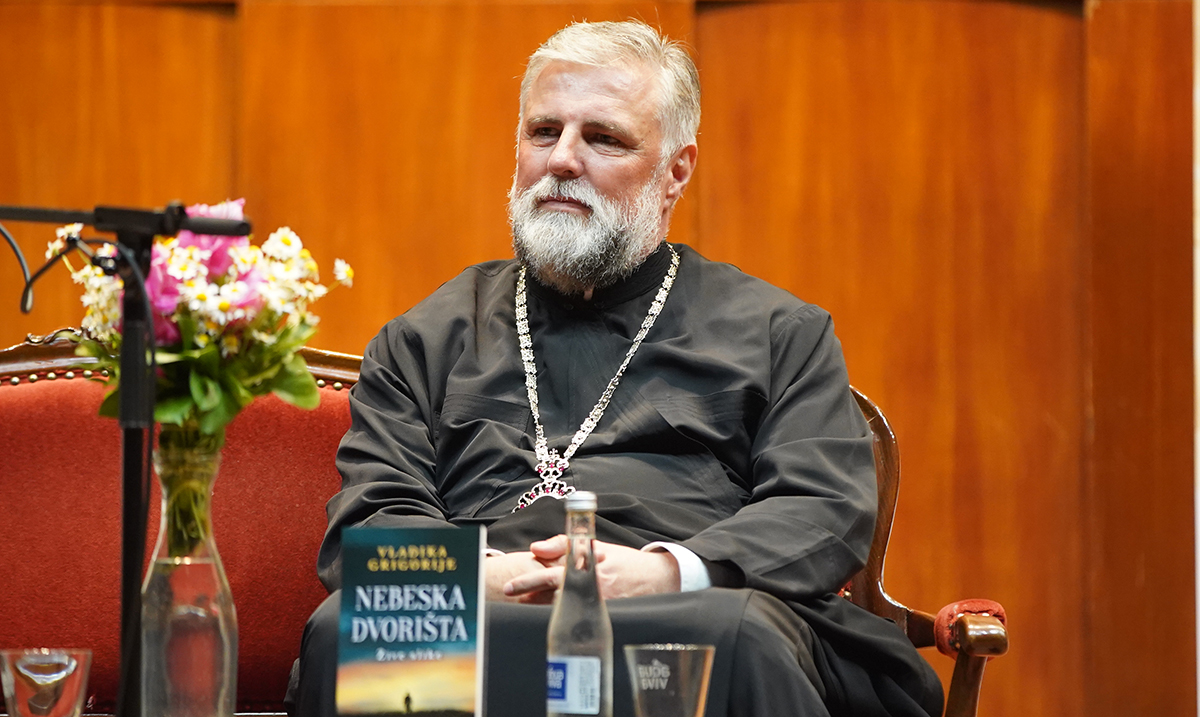 The promotion of the book „Heavenly Yards“ by Bishop Grigorije was held in the Great Hall of the Kolarac Endowment.Promocija knjige „Nebeska dvorista“ vladike Grigorija odrzana je u Velikoj dvorani Kolarceve zaduzbine.