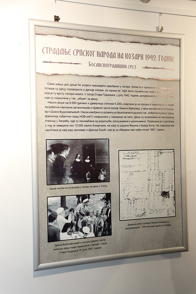 Izložba prikazuje jedan od najvećih zločina nad stanovništvom (prvenstveno srpskim i romskim) tokom Drugog svetskog rata na području Bosanske Gradiške (današnje Gradiške).