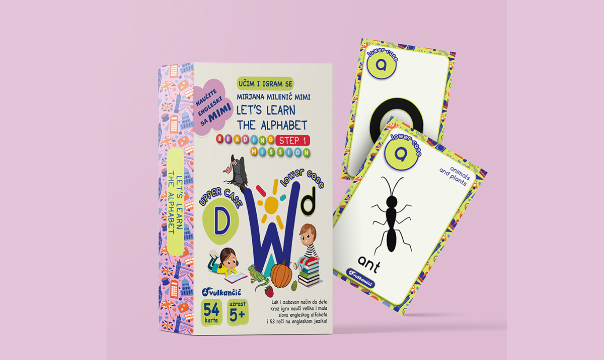 Edukativne karte Let’s Learn the Alphabet, koje na idealan način objedinjuju učenje, igru i kreativnost, uskoro će biti dostupne su na sajtu vulkancic.rs i u knjižarama Vulkan širom Srbije.