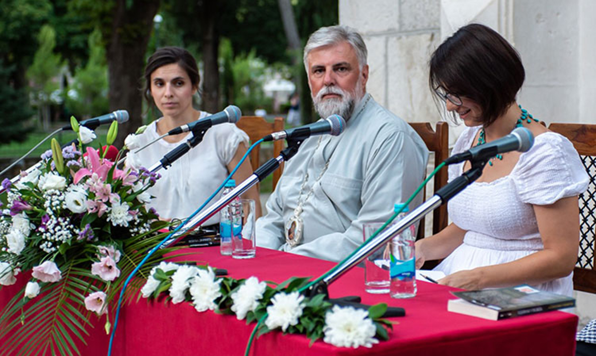 Nakon nesvakidašnje beogradske promocije knjige „Nebeska dvorišta“, vladika Grigorije je svoje delo predstavio u Trebinju u dvorištu Saborne crkve Svetog preobraženja Gospodnjeg.