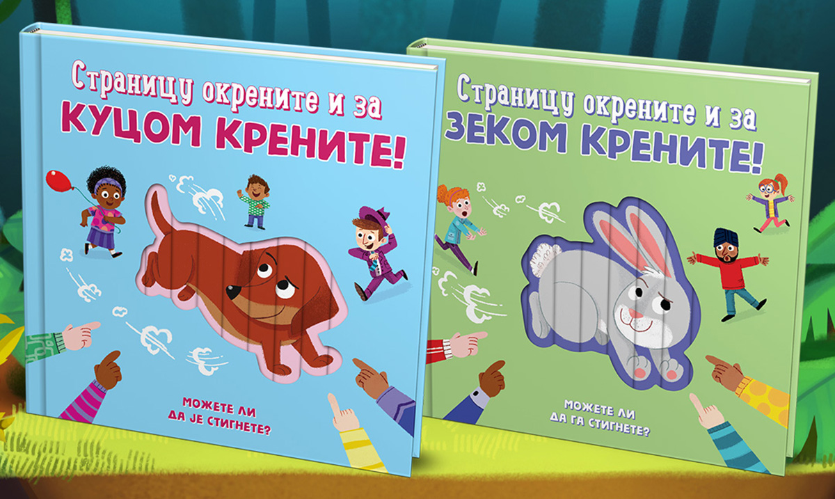 Knjige koje upoznaju decu s novim pojmovima i podstiču maštu Stranicu okrenite i za zekom krenite i Stranicu okrenite i za kucom krenite dostupne su na sajtu vulkancic.rs i u knjižarama Vulkan širom Srbije.