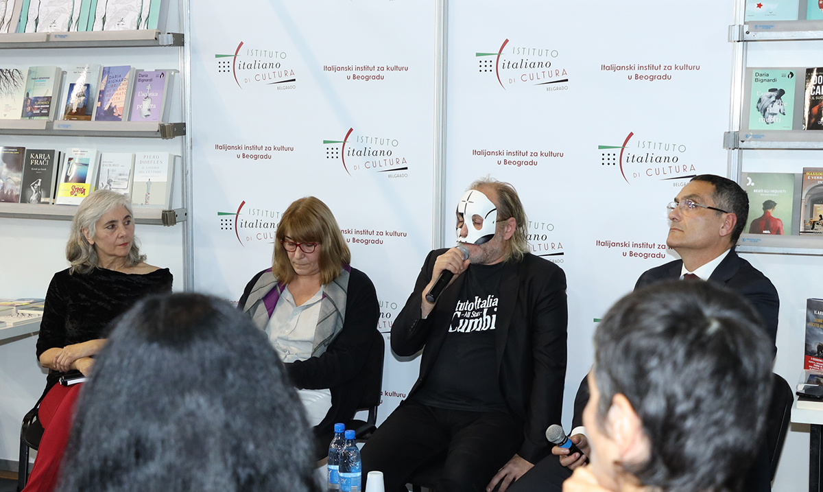 The third day at the 65th International Book Fair at the Belgrade Fair.Treceg dana na 65. Medjunarodnom sajmu knjiga na Beogradskom sajmu na standu Italijanskog instituta za kulturu u Beogradu odrzana je promocija srpskog izdanja graficke novele Pazoli