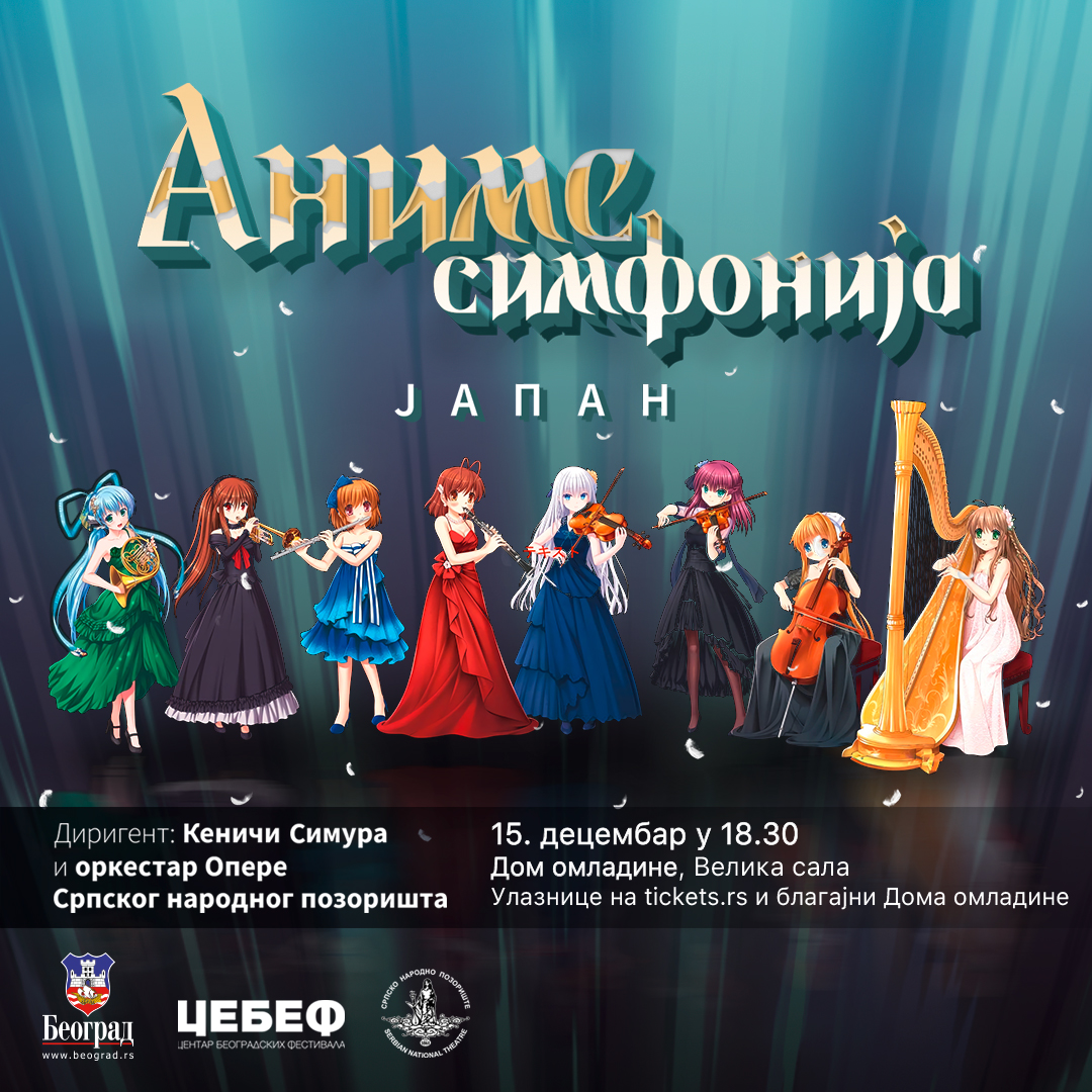 Nesvakidašnji spektakl koji objedinjuje anime i operski orkestar stiže 15. decembra od 18.30 u veliku salu Doma omladine. Po prvi put u Beogradu održaće se „Anime simfonija“ uz dirigenta iz Japana – Keniči Simuru, orkestar Opere Srpskog narodnog pozorišta i projekcije anima na ekranu.