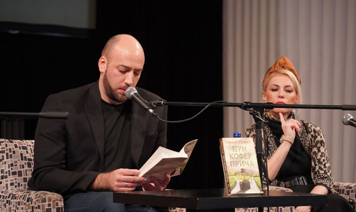 Pisac je pročitao dve priče iz svoje zbirke – „Ako imaš nekog koga nemaš“ koja otvara knjigu „Pun kofer priča“ i „Handke“, posvećena austrijskom nobelovcu Peteru Handkeu, zapravo preneto lično iskustvo pri upoznavanju sa slavnim piscem na Mećavniku kod Emira Kusturice.