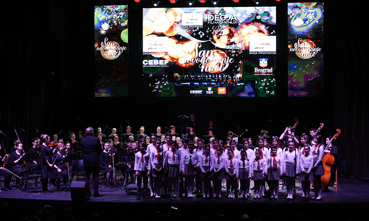 Tradicionalnim, gala koncertom Dečja filharmonija ispratila je staru godinu i napravila najlepšu uvertiru za doček Nove godine. Pred punom MTS dvoranom na koncertu “San novogodišnje noći” predstavilo se 80 muzičara predvođenih dirigentom, profesorom Ljubišom Jovanovićem.