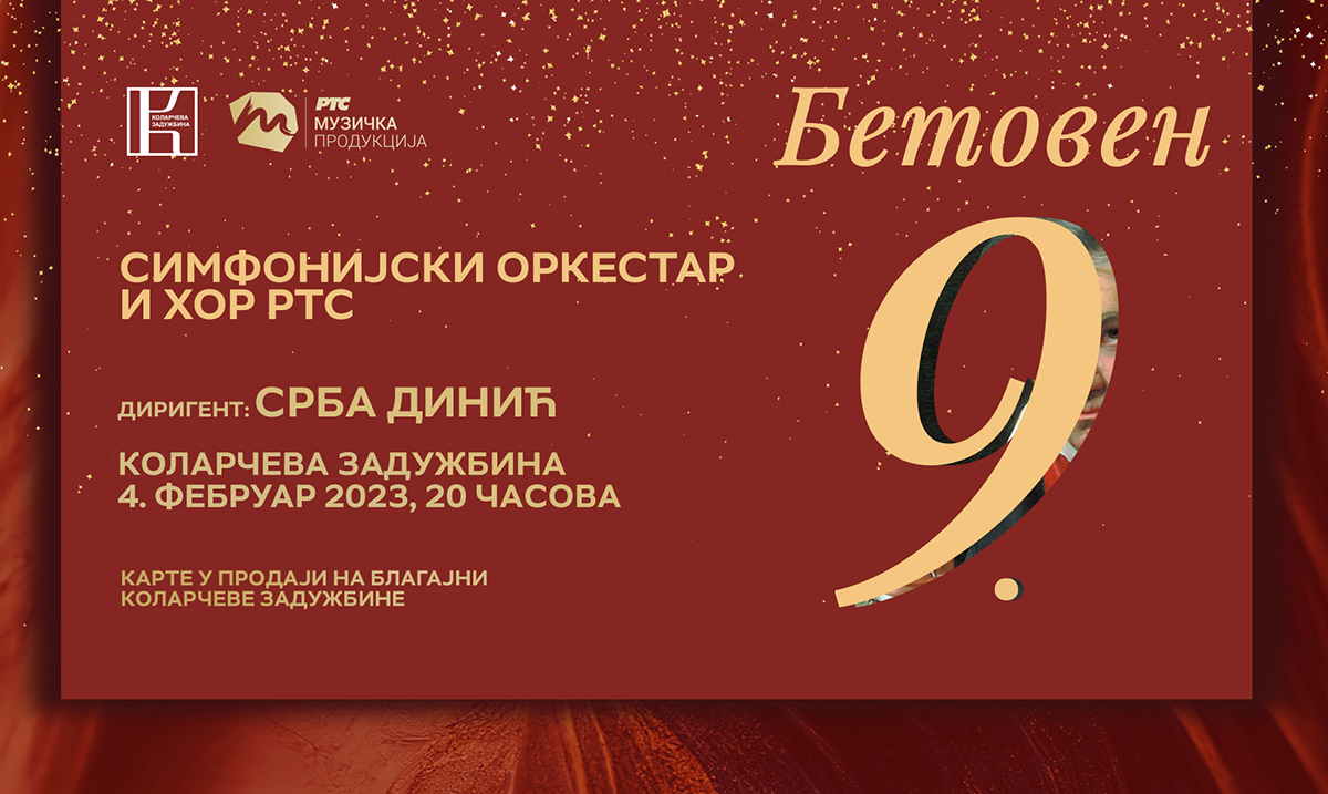 Povodom 91. rođendana Velike dvorane 4. februara u 20 časova biće izvedeno jedno od najmonumentalnijih dela muzičke istorije – Deveta simfonija Ludviga van Betovena. Kao solisti na koncertu će nastupiti sopran Sonja Šarić, alt Jelena Končar, tenor Stevan Karanac i bas Goran Krneta, a dirigovaće Srba Dinić.