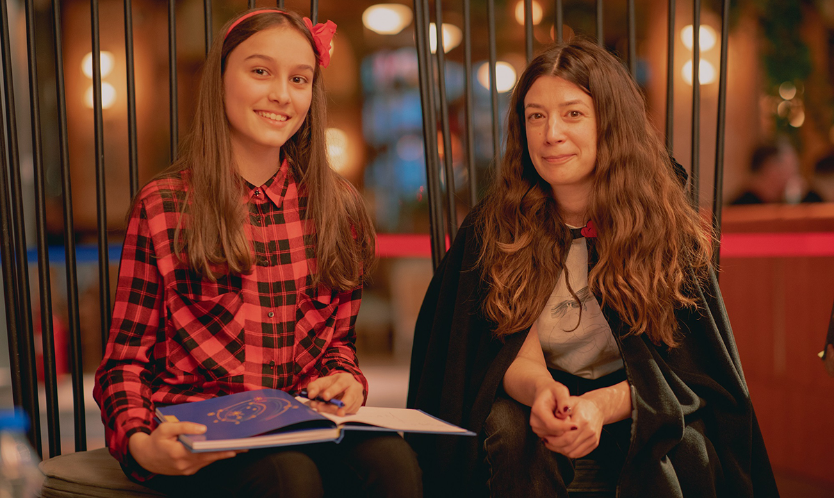 Staša Vukadinović, autorka, potpisuje knjigu POvratak u Neobuzdaniju, glumici Sofiji Nikolić