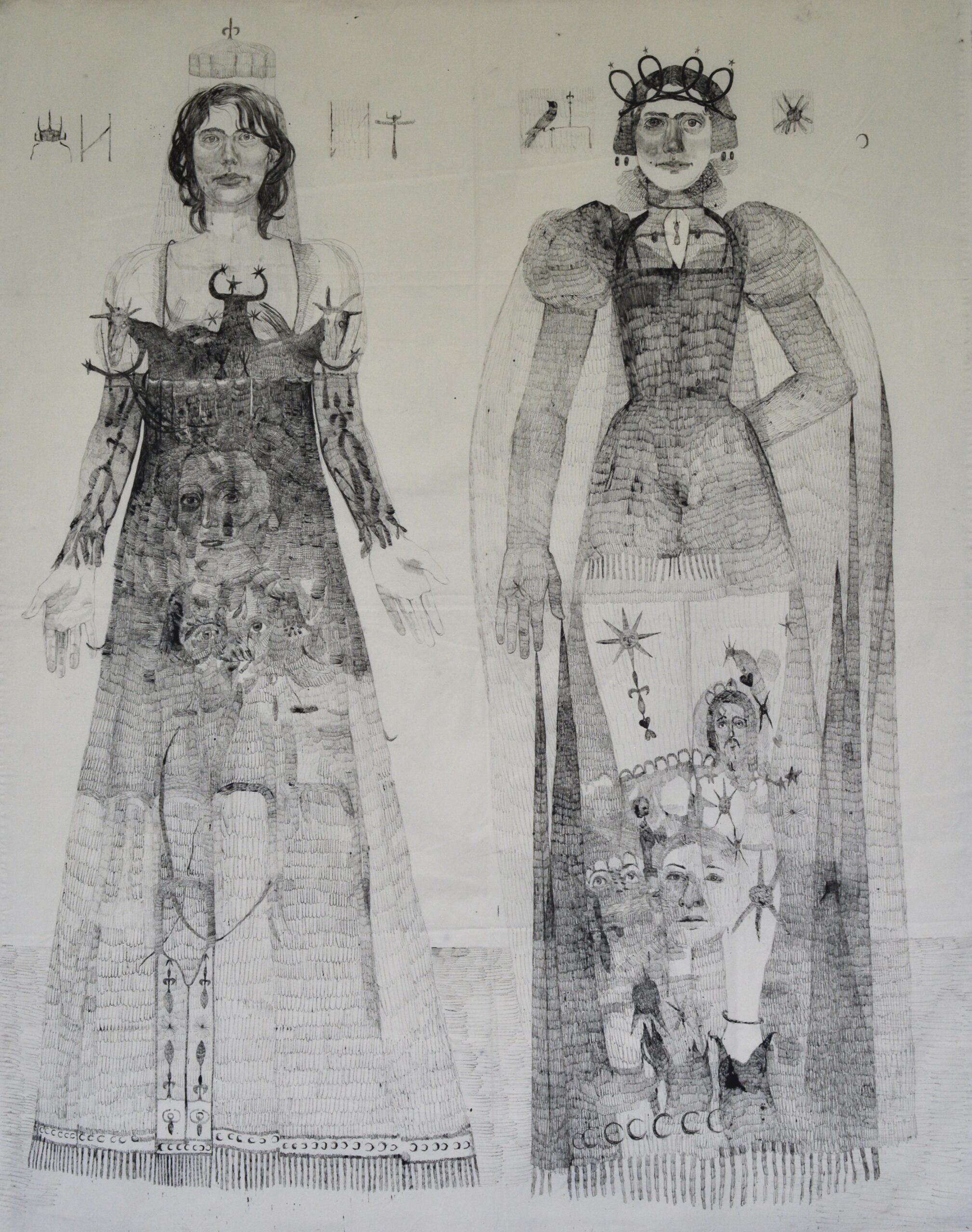 Ana Simić promišljeno daje omaž ženama svih epoha – majkama, vladarkama, suprugama, sirenama i vešticama izvlačeći ih iz seke muškarca iako se “Insignije kao oznake visokog društvenog položaja ili ugleda uglavnom automatski povezuju sa muškarcima, najčešće vladarima”. Bojana Jovanović, istoričarka umetnosti