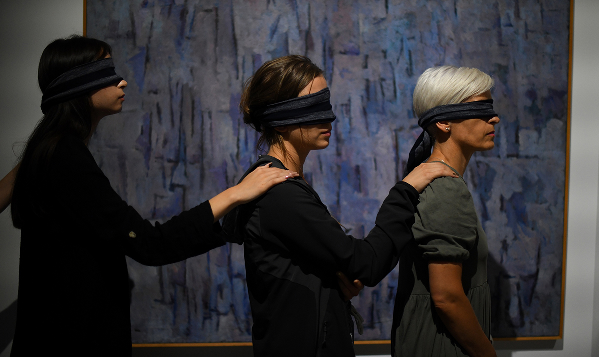 Poslednje vođenje na neviđeno kroz „Plavu izložobu“ u Muzeju savremene umetnosti u Beogradu održaće se u subotu 23. septembra od 14 i 16 časova. Boris Dončić, saradnik na izložbi iz Saveza slepih Srbije, pripremio je turu kroz postavku koja isključuje vid, ali aktivira sva druga čula. Ovo je poslednja prilika da se višečulna postavka dela iz kolekcije Muzeja savremene umetnosti sagleda sa povezima na očima na izložbi namenjenoj slepim i slabovidim osobama. Umetnička dela prilagodili su studenti Fakulteta likovnih umetnosti, izradivši prostorne, zvučne i taktilne interpretacije za doživljaj umetnosti celim telom.
